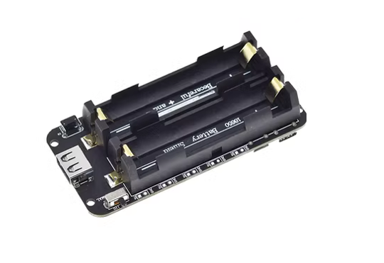 This isn’t just a battery holder; it is a complete power management system. The “V3” Shield allows you to snap in standard 18650 lithium batteries and immediately get regulated power for your projects. It features a full-sized USB Type-A port (great for powering a Raspberry Pi or charging a phone) and rows of solder pins outputting 3V and 5V (perfect for wiring directly to an ESP32 or Arduino). It handles the charging of the batteries via a Micro-USB/Type-C input port.
